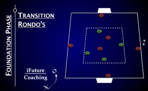 Transition Rondo’s https://youtu.be/ayUxb-8Wz_U Green players will look to keep the ball away from the Red players inside the central area. Once the red team gains